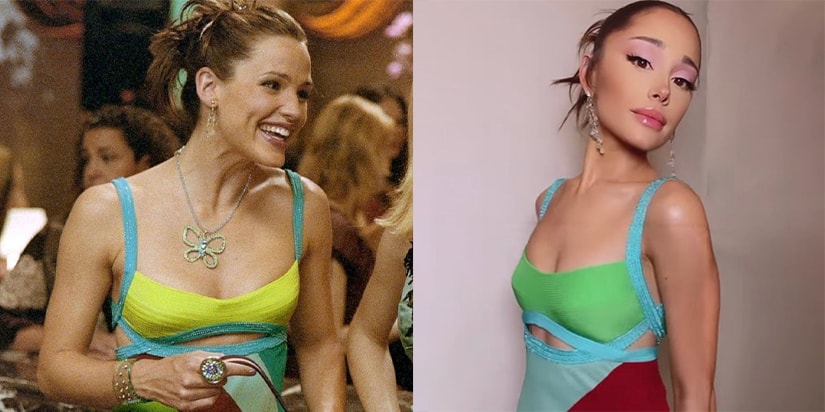 While Grande eschewed the butterfly necklace Garner accessorized with she otherwise stayed true to the movie in her blue-and-green minidress. Ariana Grande on The Voice on NBC was spotted wearing this pink embroidered scoop neck dress on The Voice on Nov 16 2021s episode. Ariana Grande 28 showed off her toned arms in a leather dress on Instagram while celebrating the finale of The Voice.